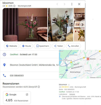 Diese Inhalte werden in der Google-Suche und in den Google-Maps-Ergebnissen angezeigt.